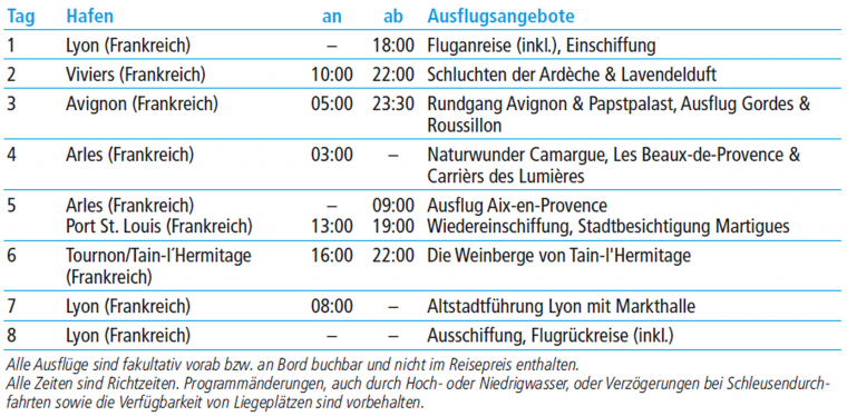 Diese unvergessliche Reise führt Sie durch eine traumhafte Kulisse von Burgunder Reben, wilden Kräutern und malerischen Schluchten. Entdecken Sie Mythen und Legenden rund um Avignon und den bereits von Julius Caesar bewunderten weißen Camargue-Pferden. Diese Kreuzfahrt mit A-ROSA LUNA verspricht unvergessliche Erlebnisse und atemberaubende Ausblicke auf die Schätze des südlichen Frankreichs.