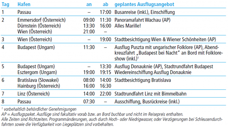 Sie ist die Königin unter Europas Flüssen, reich an Geschichte und von Legenden umwoben. Einen erfrischenden, melodischen Strom nannte sie der Dichter Friedrich Hölderlin, mal übermütig schäumend, mal heiter träumend. Kaum ein anderer Fluss der Welt inspirierte so viele Dichter, Musiker und Maler zu großartigen Werken wie die Donau. Genießen Sie stolze Städte und Burgen, die Ihren Weg entlang wildromantischer Landschaften säumen.