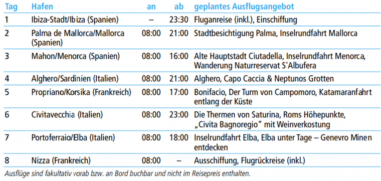 Im Oktober zeigt sich das Mittelmeer von seiner vielleicht schönsten Seite: die Sonne wärmt noch angenehm und die Inseln entfalten eine ruhige, fast magische Atmosphäre. Eine Kreuzfahrt durch dieses herbstliche Paradies wird so zu einer Reise voller Farben, Düfte und genussvoller Entschleunigung. Inmitten der beeindruckenden Inselwelt reichen sich die schönsten Ziele im westlichen Mitelmeer die Hände und verzaubern Sie mit mediterraner Magie.