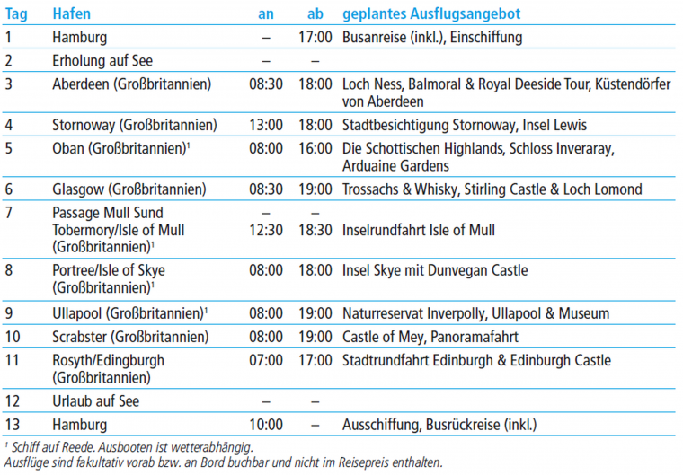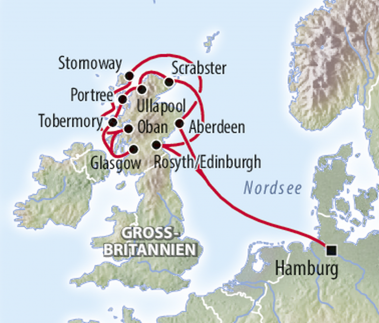 Diese Reise berührt Herz und Seele: eine Kreuzfahrt nach Schottland – ein Land voller Geschichte, mystischer Landschaften und beeindruckender Küstenlinien. Die zerklüfteten Küsten der Hebriden, das tiefe Blau der Fjorde und die einsamen Leuchttürme, die auf Klippen in den Himmel ragen oder verwunschen scheinende Orte wie die Isle of Skye, wirken beinahe unwirklich, als wären sie einem Märchen entsprungen. Hier schlägt das Entdeckerherz deutlich höher!