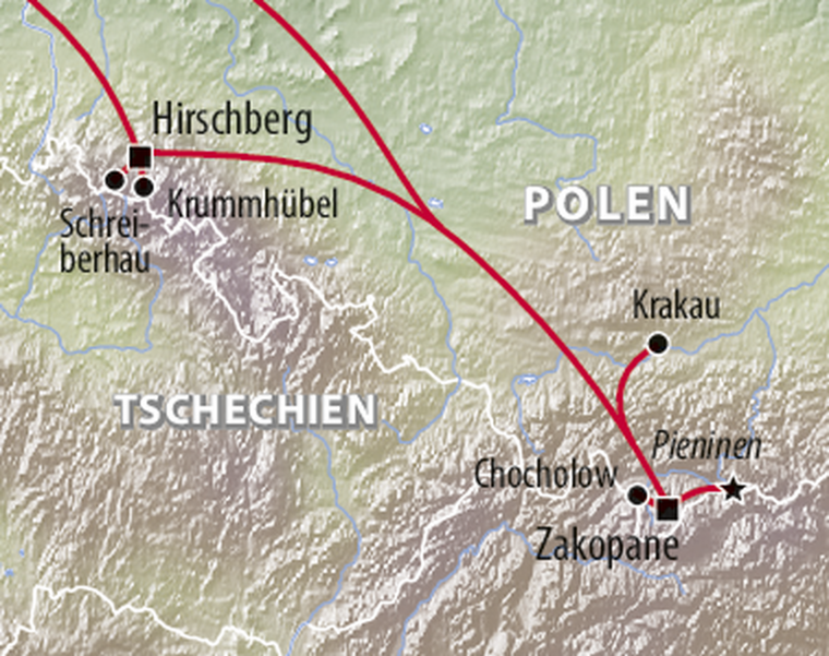 Zwischen dem sagenumwobenen Riesengebirge und der beeindruckenden Tatra erwartet Sie eine facettenreiche Reise durch Südpolen. Malerische Berglandschaften, traditionsreiche Holzdörfer und lebendige Kulturstädte wie Krakau verbinden sich zu einem eindrucksvollen Erlebnis. Die Pieninen mit der Dunajec-Schlucht setzen einen besonderen landschaftlichen Höhepunkt – eine Reise voller Eindrücke und Entdeckungen.