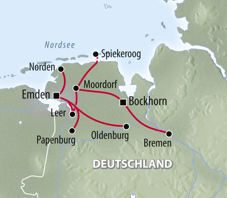 Willkommen in Ostfriesland! Lernen Sie das typische Ostfriesland mit all seinen Besonderheiten kennen, darunter kulinarische Leckerbissen, gelebte Traditionen, die plattdeutsche Sprache und der ostfriesische Humor. Zudem weiß Bremen mit seiner historischen Altstadt samt Bremer Stadtmusikanten zu beeindrucken. Ausflüge auf der Ostfriesischen Halbinsel, über beschauliche Küstenorte bis hin zur malerischen Insel, bieten ein abwechslungsreiches Reiseprogramm.