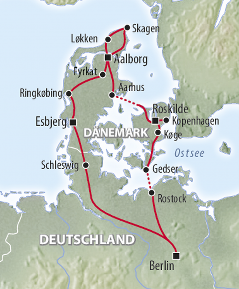Mit seiner über 7.000 Kilometer langen Küste, reizvollen Städten und Spuren aus der Wikingerzeit zeigt sich Dänemark als Land zwischen Geschichte, Natur und nordischer Lebensfreude. Diese Rundreise führt Sie von der Westküste Jütlands über Aalborg und Aarhus bis auf die Insel Sjælland, wo Roskilde und die Hauptstadt Kopenhagen mit ihren kulturellen Höhepunkten auf Sie warten. Freuen Sie sich auf eine Reise voller lebendiger Geschichte.