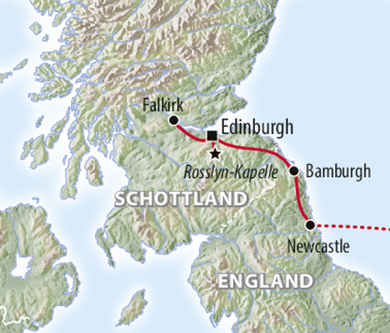Am Vormittag besichtigen Sie die berühmte Rosslyn-Kapelle mit ihren kunstvollen Steinmetzarbeiten. Sie gehört zu den schönsten Kirchen Schottlands und war Drehort für den Film The Da Vinci Code. Anschließend fahren Sie nach Newcastle, wo Ihr Fährschiff der DFDS auf Sie wartet. (F, A)
