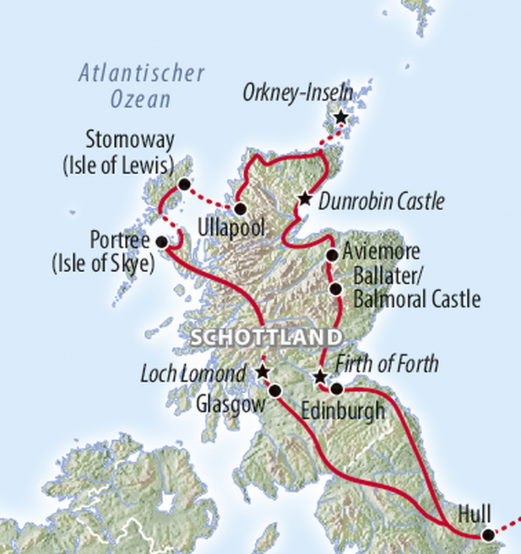 Zerklüftete Vulkanplateaus, satt grüne Berghänge und bizarre Felsformationen: Die Landschaft Nordschottlands hat viele Gesichter. Begleiten Sie uns auf eine abwechslungsreiche Rundreise zu den wildromantischen Inseln der Hebriden, die geprägt sind von ursprünglicher Schönheit und kulturellen Einflüssen der Wikinger und Skandinavier. Überzeugen Sie sich von der Vielfalt atemberaubender Naturkulissen und bewundern Sie königliche Schlösser und keltisches Erbe.