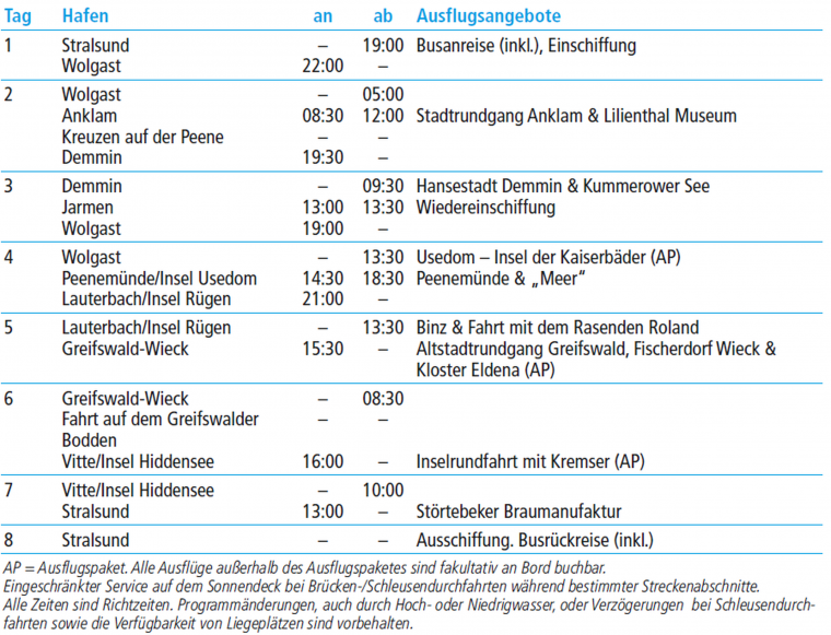Erleben Sie Mecklenburg-Vorpommern von seiner genüsslichsten Seite! Der Greifswalder Bodden offenbart sich Ihnen als faszinierendes Naturparadies mit einsamen Inseln und reicher Seefahrertradition. Die naturbelassene Peene mit ihren wilden Ufern wird nicht ohne Grund als der "Amazonas des Nordens" bezeichnet. Spüren Sie die Leichtigkeit des Ostseesommers während dieser außergewöhnlichen Kreuzfahrt.