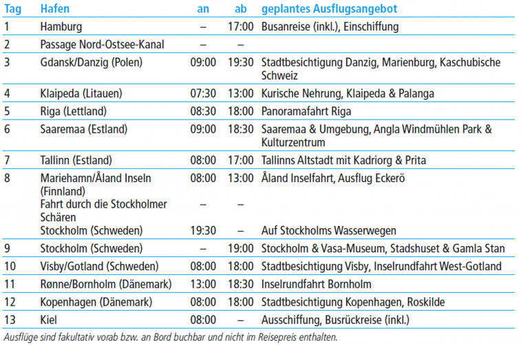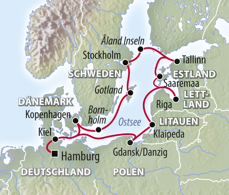 Diese fantastische Reise entführt Sie zu den schönsten Häfen und prachtvollsten Baudenkmälern an der Ostseeküste. Neben dem beeindruckenden Nord-Ostsee-Kanal erwarten Sie die Kaschubische Schweiz, romantische Fachwerkhäuser in Klaipeda, der beeindruckende Rigaer Marktplatz und die schmucke Altstadt von Tallinn. Genießen Sie die idyllischen Wasserwege mit MS HAMBURG.