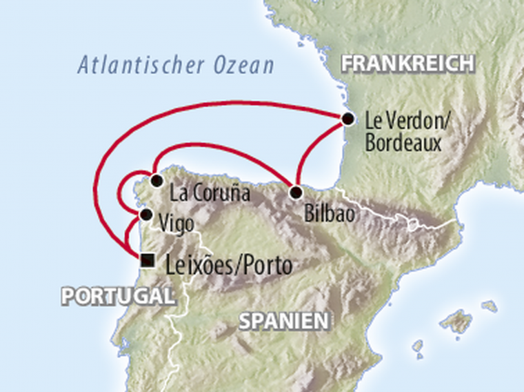 Erleben Sie eine nicht alltägliche Kreuzfahrt entlang der faszinierenden Atlantikküste Westeuropas – eine Reise voller landschaftlicher Kontraste, kultureller Schätze und kulinarischer Höhepunkte. Ob das liebliche Weinanbaugebiet im Südwesten Frankreichs, die traditionsreichen Städte im stolzern Baskenland oder die atemberaubende Küstenlandschaft Galiziens, diese Reise ist mehr als nur ein farbenfroher Strauß voller sommerlicher Erlebnisse.