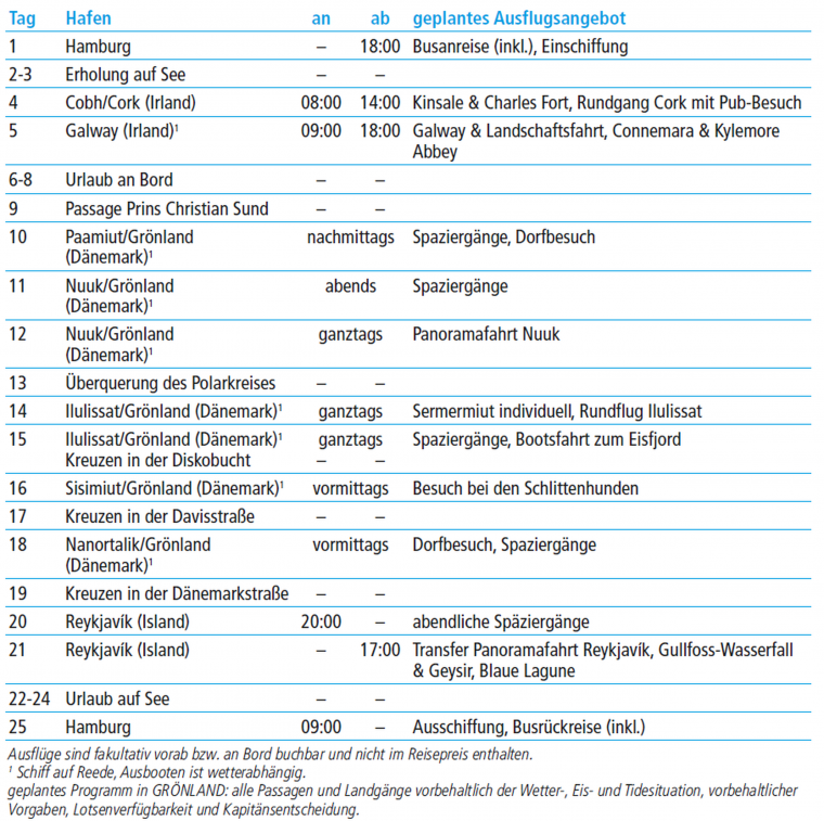 Erleben Sie eine Reise voller Entdeckungen und mit besonders viel Zeit für ein außergewöhnliches Ziel – Grönland! Eine atemberaubende Natur und einmalige, unvergessliche Reiseerlebnisse in der Arktis, all das und noch viel mehr verspricht diese besondere Kreuzfahrt mit MS ARTANIA. Von der grünen Insel Irland über das spektakuläre Grönland bis zur überwältigen Natur Islands – Ihre Reise steckt voller Höhepunkte. Hier sind Sie richtig!