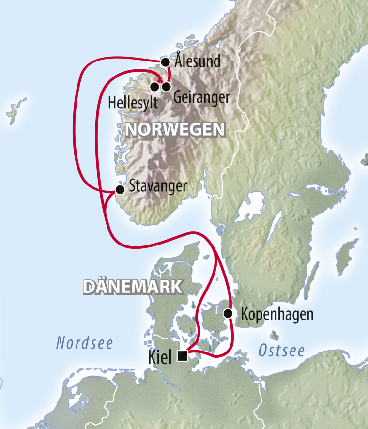 Entlang der südnorwegischen Fjorde thronen die steil aufragenden Berge majestätisch in die Höhe, malerische Wasserfälle rauschen gewaltig in die Tiefe und hinter jeder Biegung gibt es neue Naturschönheiten zu bestaunen, die das Entdeckerherz höher schlagen lassen. Hier ist pure Glückseligkeit, wenn sich die romantische Landschaft im tiefblauen Fjordwasser wiederspiegelt!