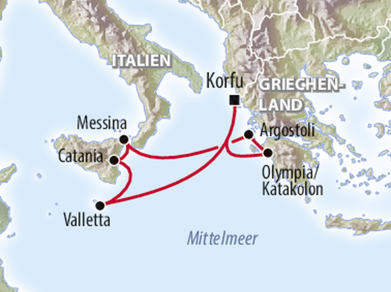 Gehen Sie mit AIDAblu auf eine Zeitreise durch Kulturen, Landschaften und Lebensfreude. Sizilien ist nicht nur die größte Insel im Mittelmeer, sondern auch eine der Vielfältigsten. Majestätisch thront hier der Vulkan Ätna und lädt zu spannenden Entdeckungen ein. Die Felseninsel Malta empfängt Sie mit einer beeindruckenden Architektur und traumhaften Buchten. In Weiß und Blau strahlen die griechischen Inseln mit den schönsten Postkartenmotiven um die Wette.
