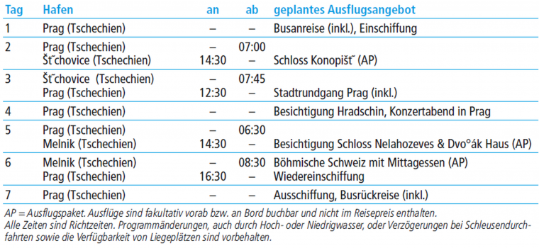 MS ELBE PRINCESSE verbindet durch einen innovativen Schaufelrad-Jetantrieb alte Tradition mit modernster Technik und lässt diese Kreuzfahrt zu einem echten Erlebnis werden. Die Moldau, der wohl schönste Fluss Europas, bietet eine atemberaubende Kombination aus malerischen Städten und grünen Uferlandschaften. Majestätische Schlösser inmitten der beeindruckenden böhmischen Landschaft und die goldene Stadt Prag bieten eine unvergleichliche Kulisse.