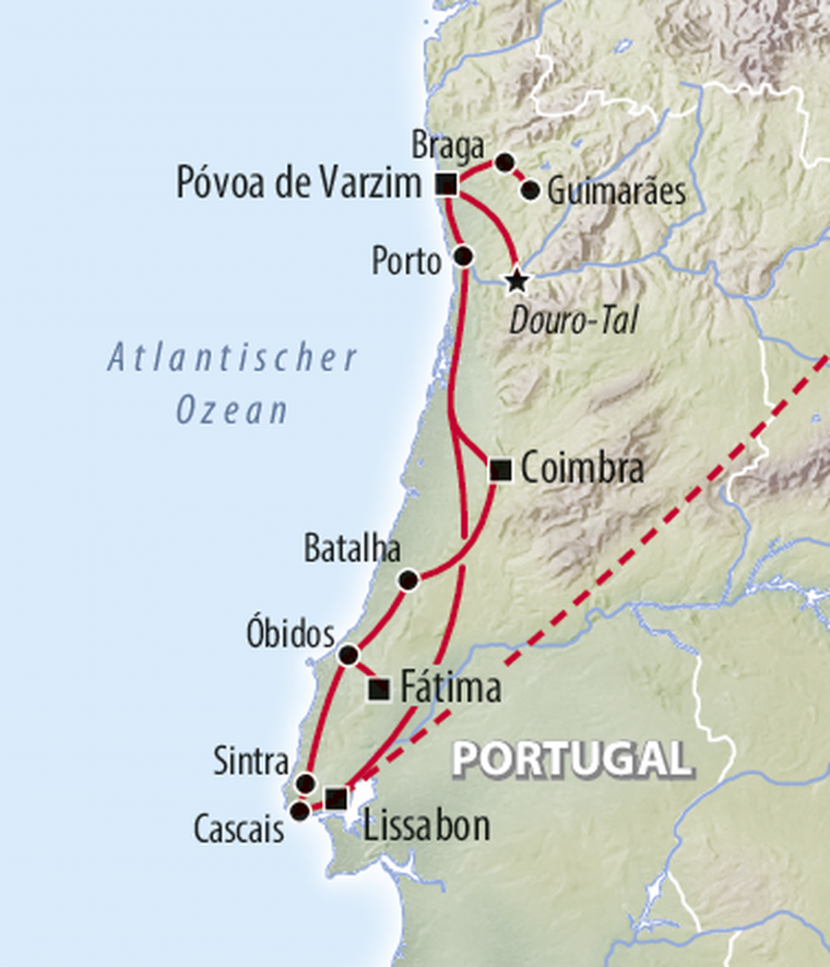 Portugals traumhafte Landschaften bezaubern von Lissabon bis Porto mit reifenden Weinreben, malerischen Dörfern, lebendigen Städten und wildromantischen Flusslandschaften. Dazu gehören das Tal des Douro, Heimat des berühmten Portweins, und zahlreiche Kulturschätze, die sich wie eine Perlenschnur vom Norden Portugals bis nach Lissabon aneinanderreihen. Freuen Sie sich auf ein unvergessliches Abenteuer im Herzen Portugals!