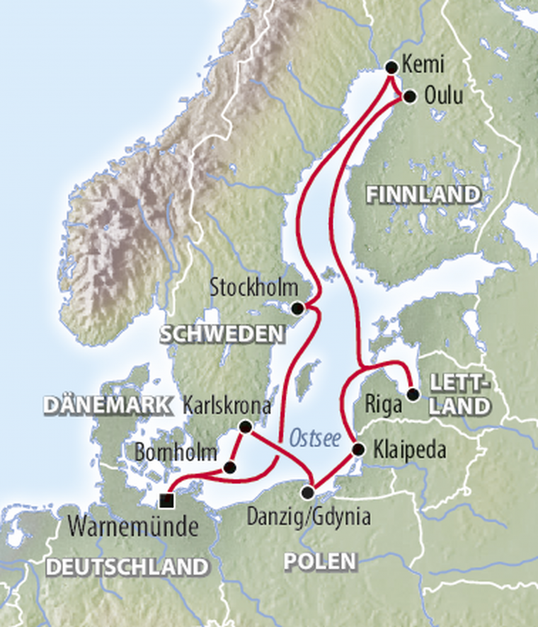 Eine Kreuzfahrt durch die Ostsee ist schon etwas Besonderes – doch wer weiter in den Norden fährt, in den Bottnischen Meerbusen, erlebt eine fast unbekannte, stille Welt: unberührte Natur und die faszinierende nordische Gelassenheit. Während die Küste entlang des Baltikums einer vergessenen Schatztruhe Europas mit alten Hansestädten und beeindruckender Kultur gleicht, glänzt Skandinavien mit seiner ruhigen, authentischen Schönheit.